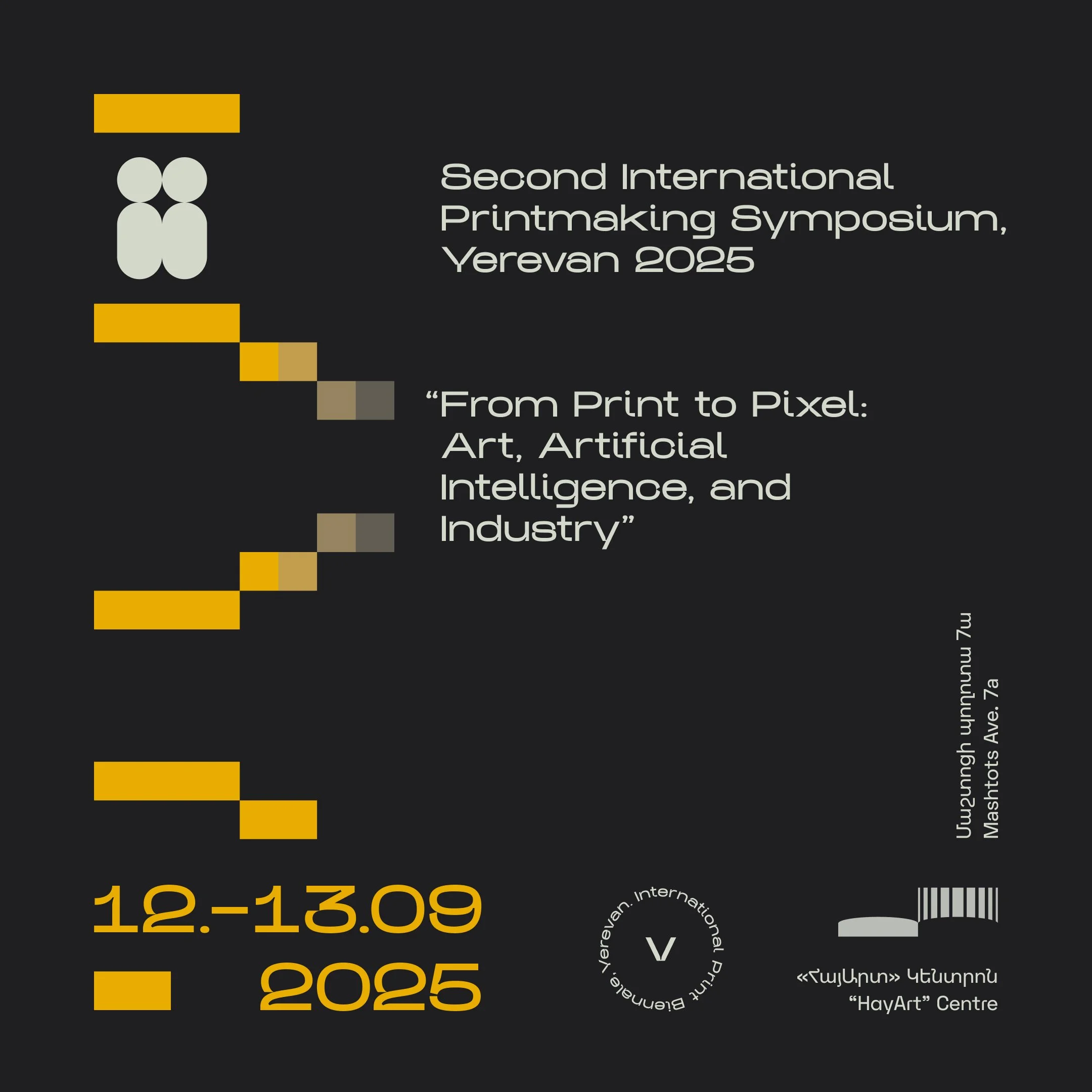 The Second International Printmaking Symposium, From Print to Pixel: Art, Artificial Intelligence, and Industry, builds upon the success of the inaugural 2023 symposium, which celebrated printmaking traditions and Armenia’s role as a regional artmaking hub. This year’s focus shifts toward the intersection of art and digital technologies, exploring how artists and technologists have historically expanded creative practice, and how AI now continues this dialogue.